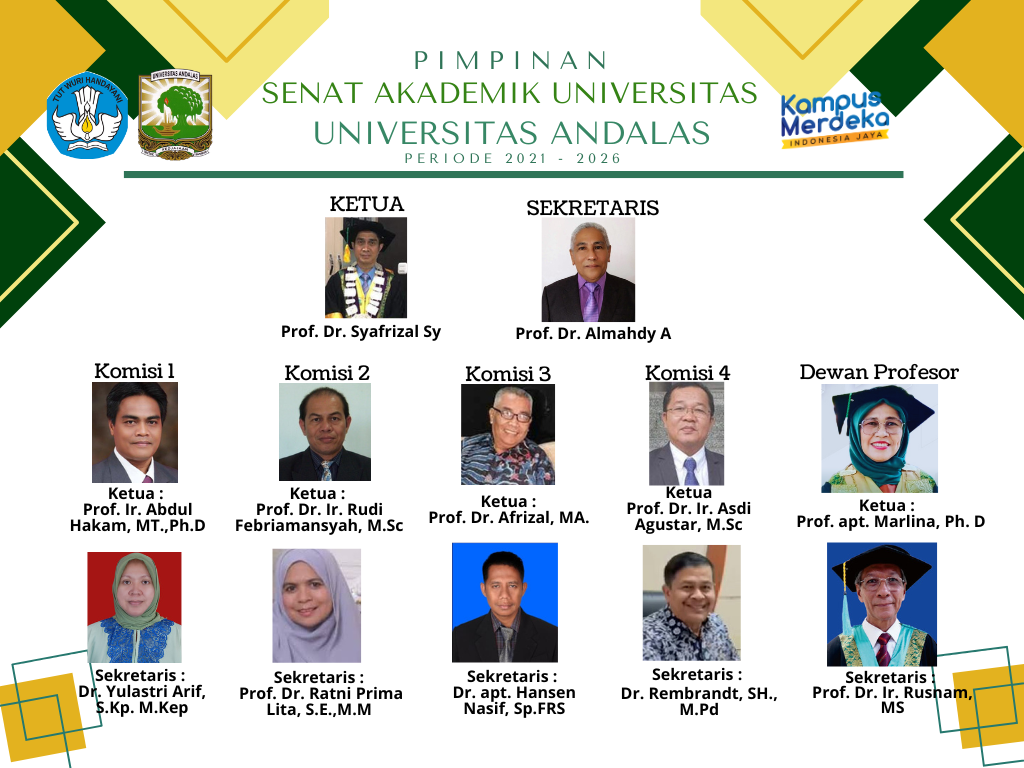 Melalui Keputusan Rektor No.7/KPT/R/PTN-BH/UNAND/2021, keanggotaan SAU berjumlah 69 orang yang mewakili 15 Fakultas yang ada di Universitas Andalas, termasuk Rektor dan 15 Dekan sebagai anggota ex-officio.
