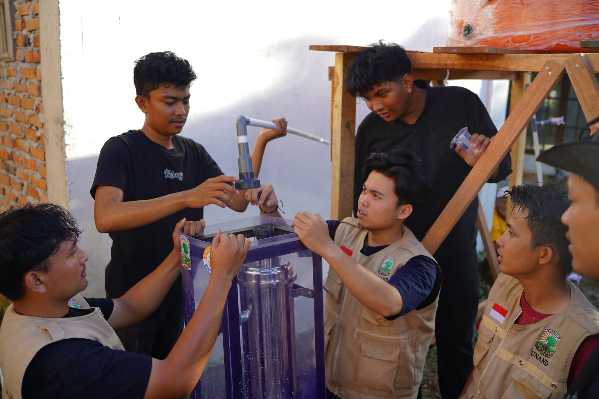 Tidak hanya melibatkan masyarakat dalam proses pemasangan, tim juga memberikan edukasi terkait cara perawatan alat filtrasi air agar sistem dapat berfungsi optimal dan dimanfaatkan secara berkelanjutan.